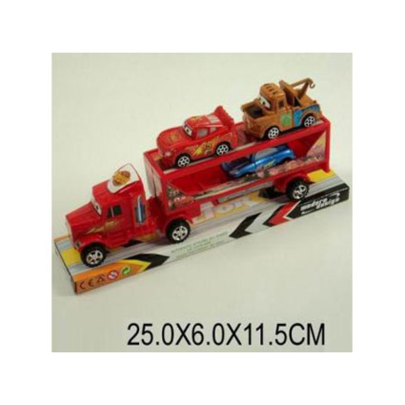 Трейлер інерційний "Тачки" з трьома машинками під слюдою.
