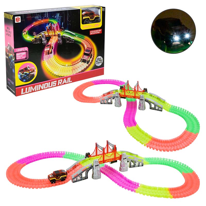 Трек на батарейках, світиться в темряві стане чудовим подарунком, який привнесе магію в ігри вашої дитини, додаючи їй нових захоплюючих можливостей!