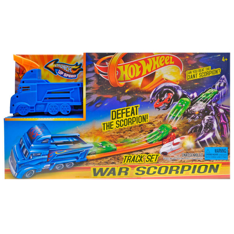 Трек із запуском "Scorpion" (+1 машинка) - дитячий трек виготовлений із дуже якісного пластику, не має гострих кутів і запаху. Всі деталі треку розроблені таким чином, що всі вони легко і надійно з'єднуються між собою. У комплект входить: 1 пускова установка, елементи треку, 1 машинка.