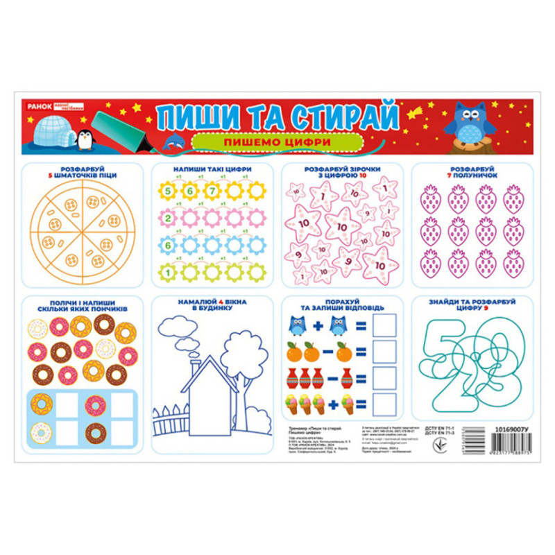 Тренажер Пиши-стирай "Пишемо цифри" 10169007 двосторонній