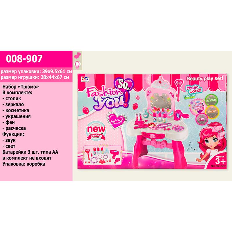 Туалетний столик дзеркало фен гребінець звук світло в кор.39*95*61см 008-907