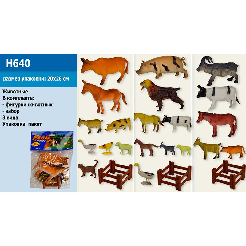Тварини арт. H640 (96шт/2)домашні,3 види,паркан,у пакеті20*26см