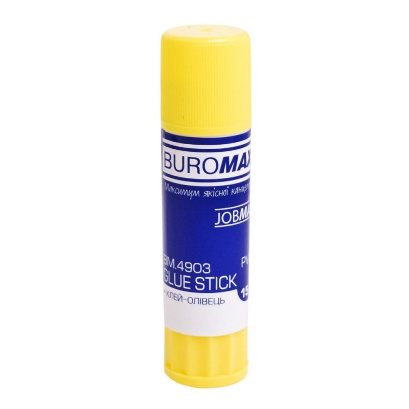 Клей-олівець 15г BM.4903 Buromax на основі РVA (полівінілацетат). Високоякісний клей-олівець JOBMAX від BUROMAX - ідеальний вибір для повсякденної роботи в офісі, школі та вдома. Призначений для склеювання паперу, етикеток, картону та інших дрібних робіт. Зручний пластиковий олівець із клеєм, що викручується. Ковпачок запобігає висиханню клею. На основі PVA. Не токсичний. Клей-олівець BUROMAX - Ваш помічник: зручний і простий у використанні, завжди можна носити з собою!
