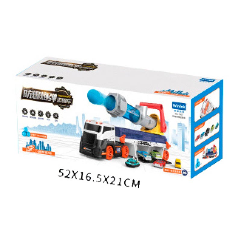 Яскрава та динамічна іграшка, яка поєднує в собі силу вантажівки, місткість автовоза та захопливий елемент — ігрову пушку. Створена для того, щоб розпалити уяву дитини: вона стає одночасно водієм, рятувальником і командиром на полі бою у казкових пригодах.
