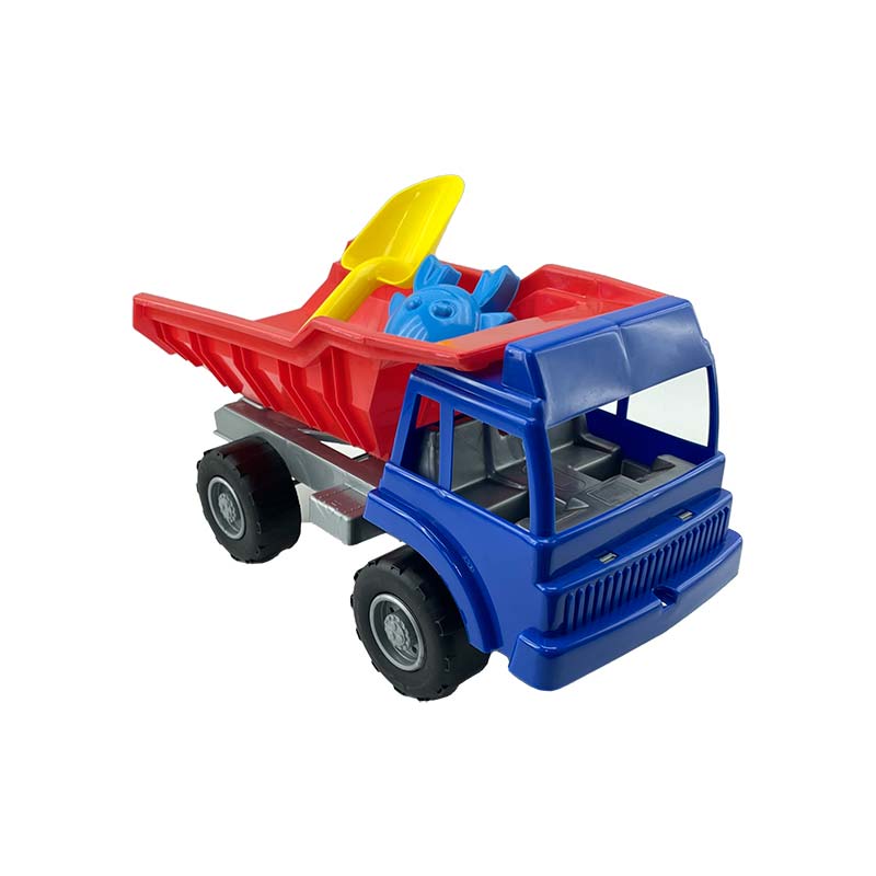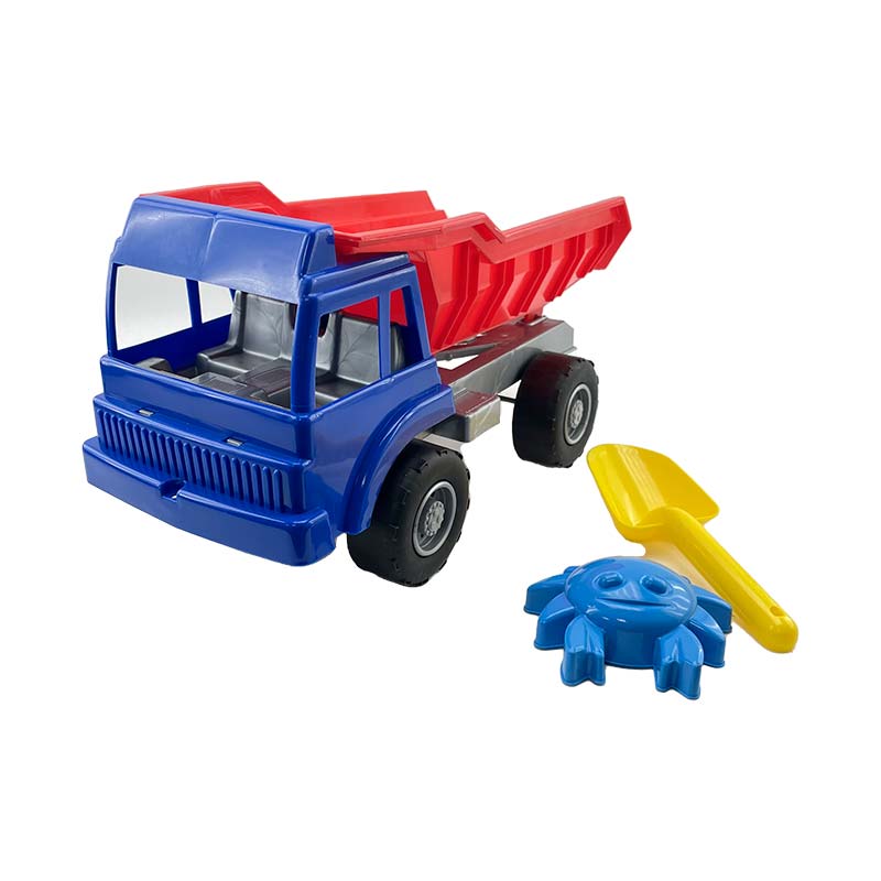 Головна "родзинка" — відкидний кузов, який фіксується у нахиленому положенні та дозволяє "вивантажувати" іграшковий пісок або інші дрібні предмети. Всі елементи виготовлені з міцного поліпропілену, безпечного для дітей.