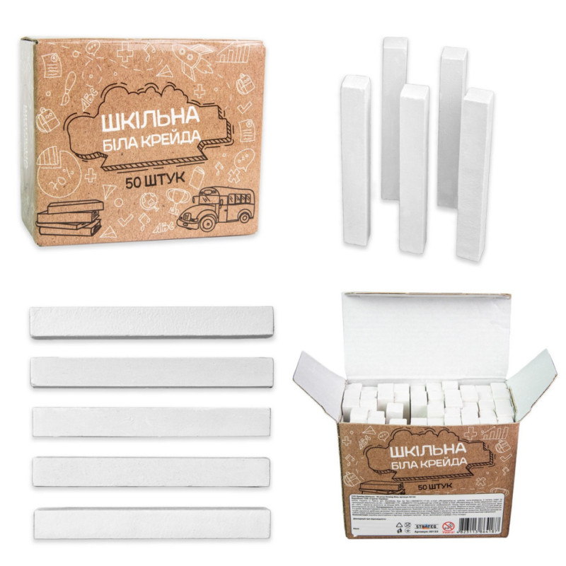 Шкільна біла крейда - класичний інструмент для навчання та безмежної творчості. Вона стане незамінною як у класі чи дитячому садку, так і під час домашніх ігор або малювання на асфальті в парку. Крейда м’яко пише на будь-яких гладких поверхнях, залишаючи чіткий слід.