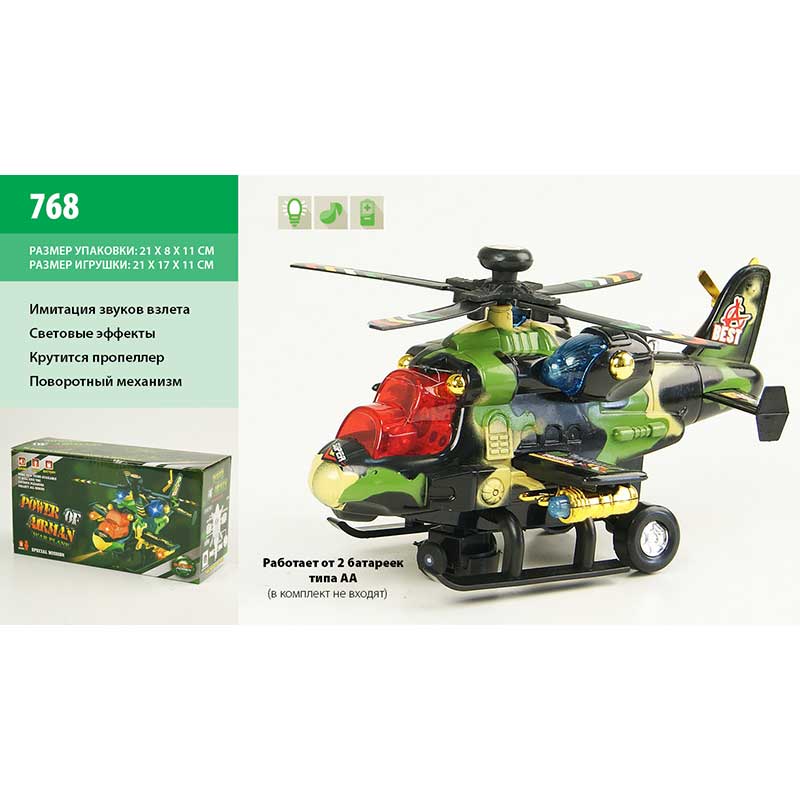 Вертоліт 768 (96шт/2) батар., світло., звук., в кор. 22*15см