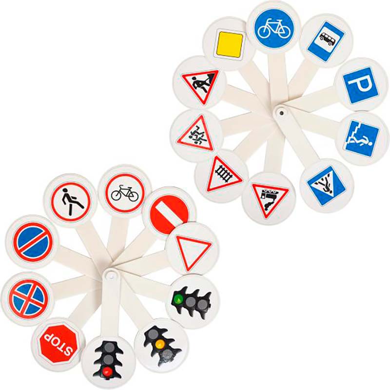 Яскравий і барвистий віяло "Дорожні знаки" для навчання дітей. З обох сторін зображені дикі знаки. 10 елементів. Якісна і стійка до стирання друк.