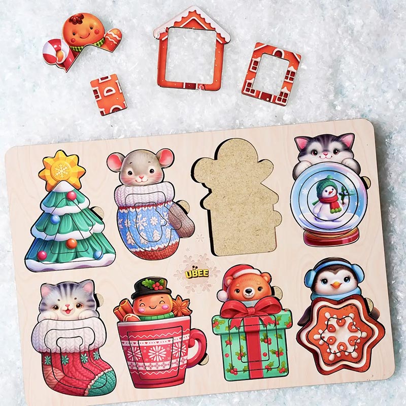 Веселий наборчик для маленьких дослідників: підбірка зимових персонажів, яких потрібно розташувати за розміром, складаючи кольорову пірамідку. Кожна деталька має добре відчутну форму і яскраві ілюстрації, що заохочують до гри та експериментів.