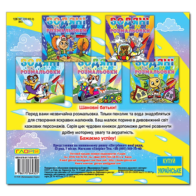 Шановні батьки! Перед вами незвичайна розмальовка. Тільки пензлик та вода знадобляться для створення яскравих малюнків. Ваш малюк не лише порине в дивовижний світ казкових тварин, але й дізнається, як кого звуть. Серія цих чудових книжок допоможе дитині вивчити літери, розвинути дрібну моторику, увагу та акуратність.