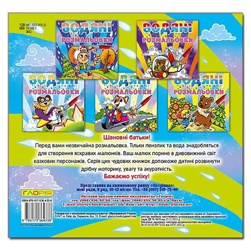 Шановні батьки! Перед вами незвичайна розмальовка. Тільки пензлик та вода знадобляться для створення яскравих малюнків. Ваш малюк не лише порине в дивовижний світ казкових тварин, але й дізнається, як кого звуть. Серія цих чудових книжок допоможе дитині вивчити літери, розвинути дрібну моторику, увагу та акуратність.