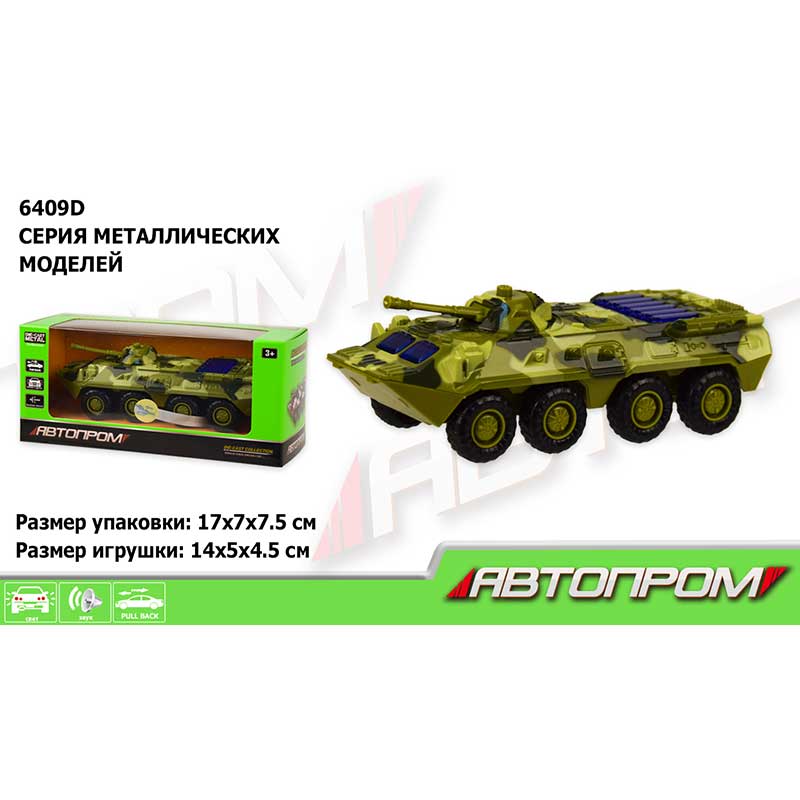 Військова техніка металл. "АВТОПРОМ" БТР 1:54 батар. світло звук в кор 6409D