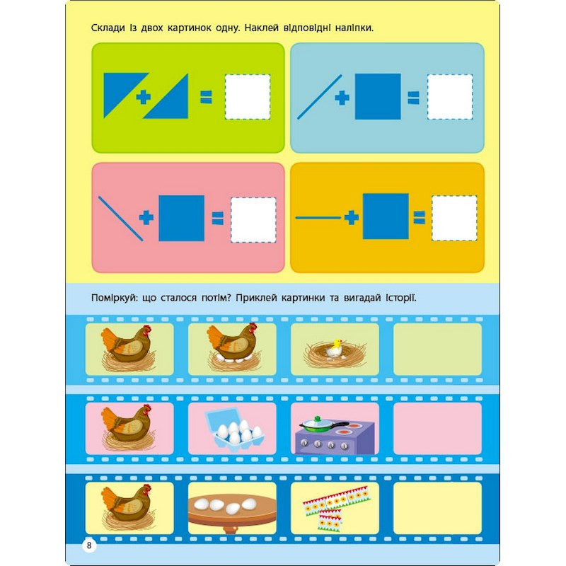 Розвивайте логічне мислення з улюбленим заняттям дітей. «Логіка» — стікербук з ігровими вправами, що має понад 50 наліпок. Для того, щоб закінчити малюнок, дитині потрібно відповісти на питання. А потім приклеїти наліпки за сюжетом. Так дитина вивчає правила розподілу і поєднання, досліджує спільні й відмінні ознаки, формує логічне мислення, розвиває увагу, тренується орієнтуватися у просторі й сприймати на слух інформацію.
