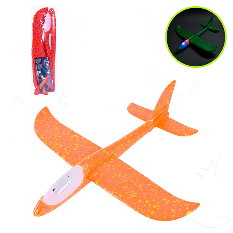 Іграшка у вигляді літака, оснащена підсвіткою, яка створює виразний ефект під час польоту. Має механізм запуску, що дозволяє легко піднімати модель у повітря без складних налаштувань. Світлові ефекти роблять гру видовищною, а простота використання забезпечує швидкий старт і захоплюючу розвагу вдень і вночі.